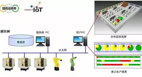 生产状态,检测运转状况,收集警报、程序运转履历、运转成果等信息与发那科机器人的连接
